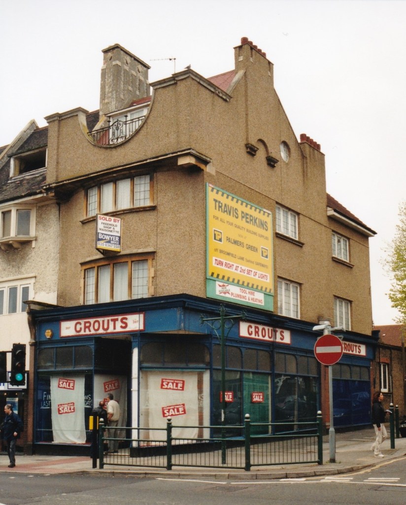 Grouts occupied 397 Green Lanes, on the corner of Devonshire Road in Palmers Green, North London. The building formed the end unit of Market Parade, which was built in 1912. Alfred Grout (1884-1970) began to rent the premises from the freeholders, the Lilley family, for £130 per annum, in autumn 1914.
