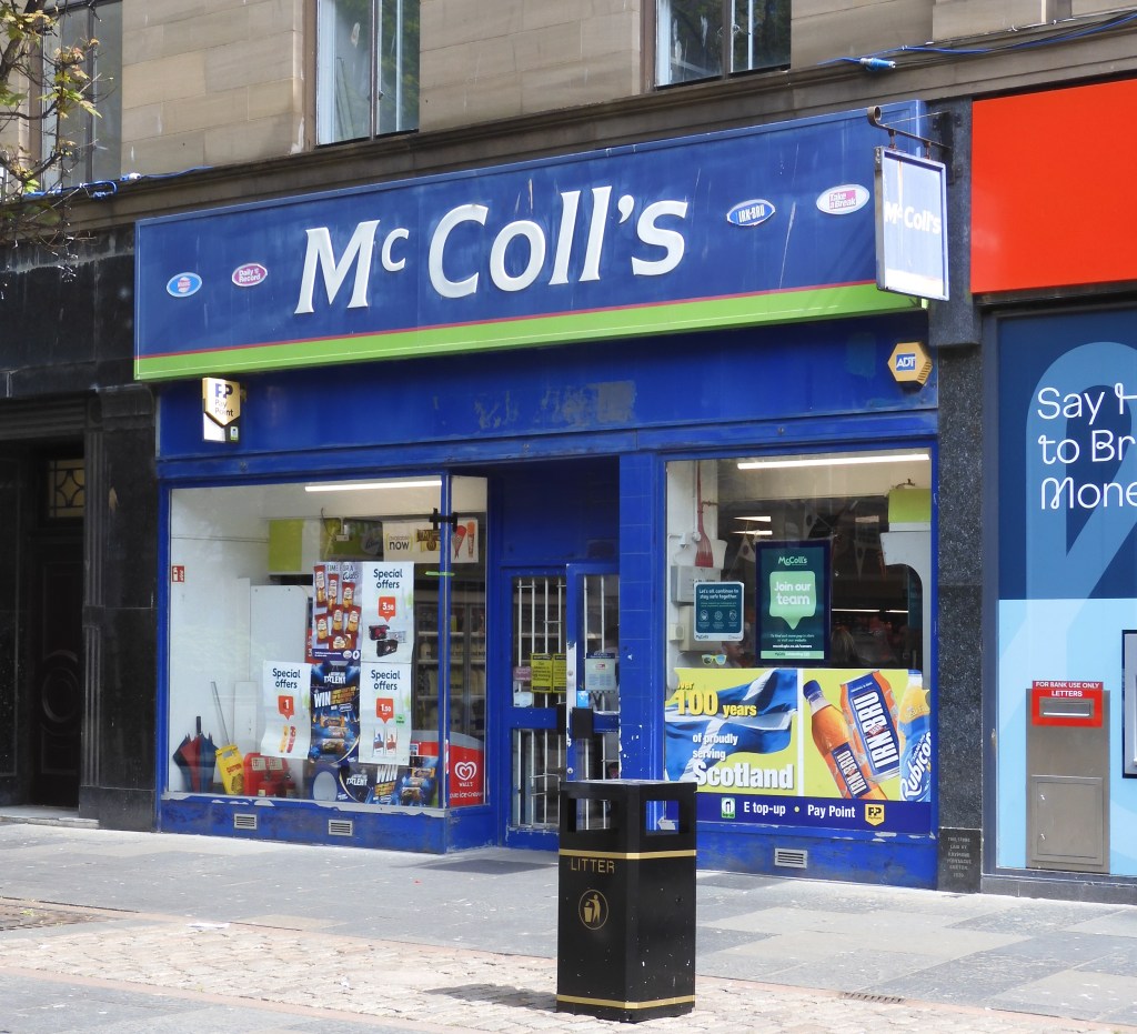 Having stocked Morrisons’ products for a few years, in 2021 McColl’s began to rebrand their stores as Morrisons Daily. When the business entered administration in 2022 it had 1149 outlets: 755 trading as McColls, 270 as Morrisons Daily, 116 as Martin’s and just eight as R. S. McColl. Now under Morrisons’ ownership, it continues to trade, with most of McColl’s shops adopting a blue and white livery with lime green highlights.