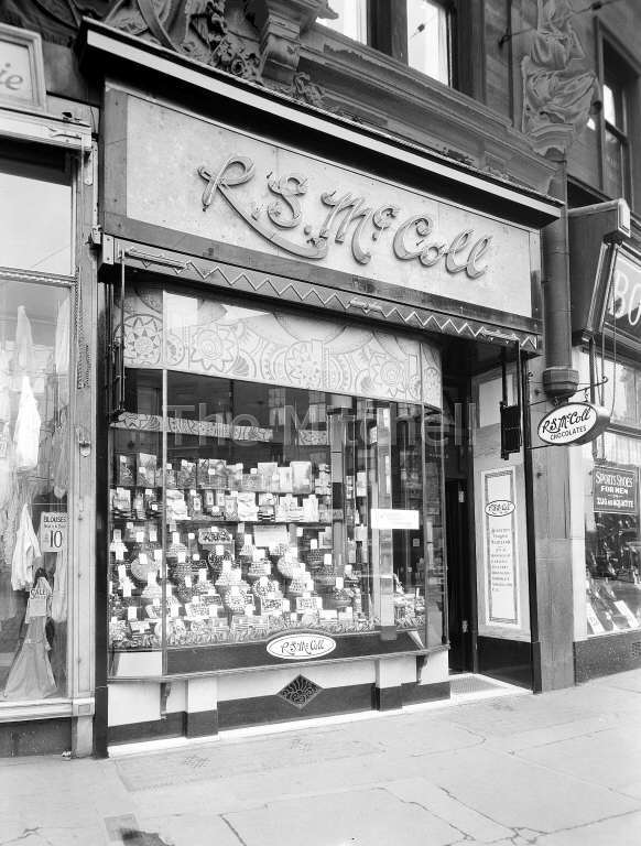 By the time a new public company was formed in 1925, McColl’s had 75 shops. These seem to have been rather splendid. When a confectioner’s shop was taken over and remodelled in St Andrews in 1926 it was reported that: ‘The interior has been remodelled in the latest style with mahogany and glass cases, while the exterior is resplendent with shining brass’.